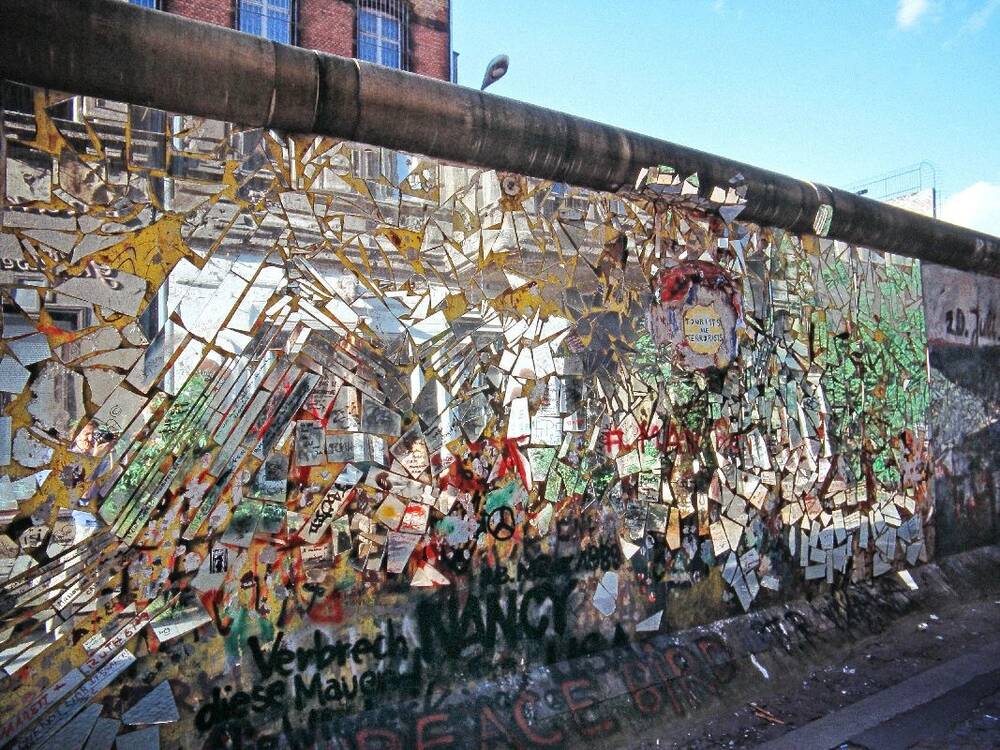 Peter Unsickers „Spiegelzimmerstraße“ war eine Antwort auf Gorbatschows „Glasnost“: der Künstler verspiegelte fast 36 Quadratmeter der Berliner Mauer, für „Transparenz und Klarheit“, 1989 (Foto: Stiftung Berliner Mauer / Rolf Kißling)